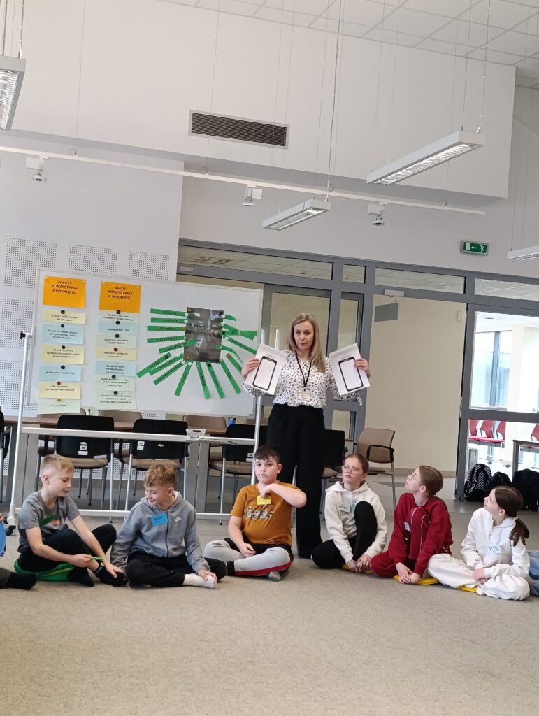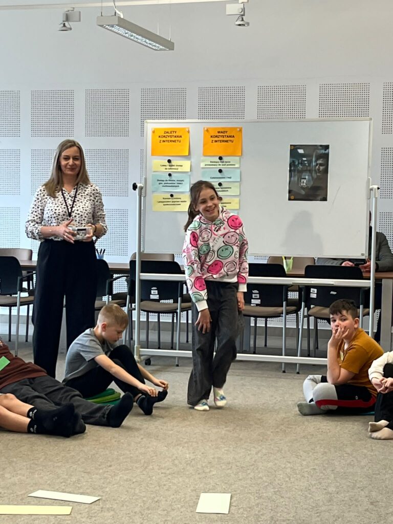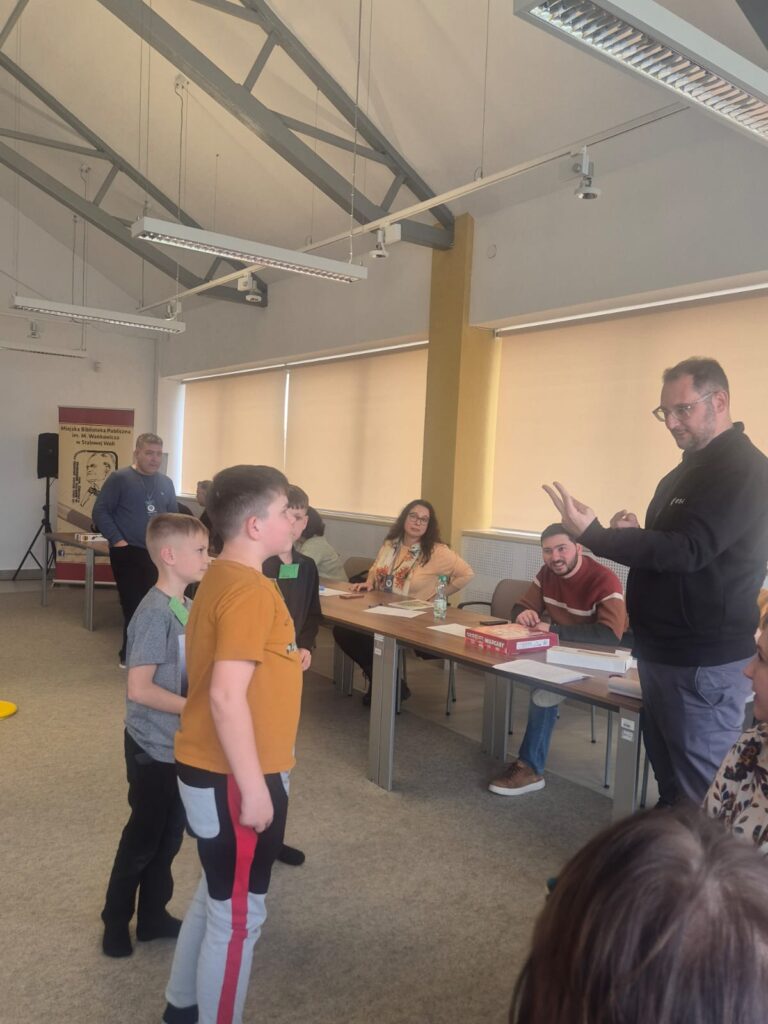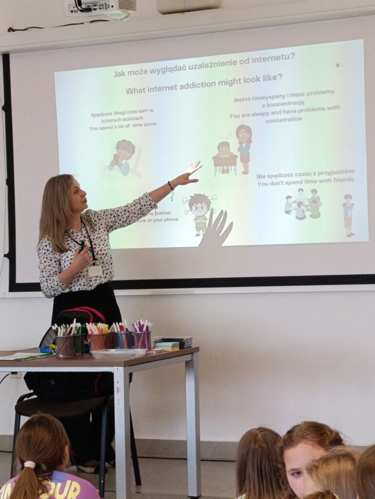 Ολοκληρώσαμε τα μαθήματα με πολύ δημιουργικό και χαρούμενο τρόπο. Τα παιδιά έφτιαξαν μπρελόκ με hashtag κατά του μίσους και πέρασαν λίγο χρόνο παίζοντας επιτραπέζια παιχνίδια. Οι ξένοι επισκέπτες μας παρουσίασαν εν συντομία στα παιδιά τις μεθόδους καταπολέμησης του εθισμού στις σύγχρονες τεχνολογίες. Τα εργαστήρια πραγματοποιήθηκαν από τη βιβλιοθηκάριο Ma łgorzata Potocka.”